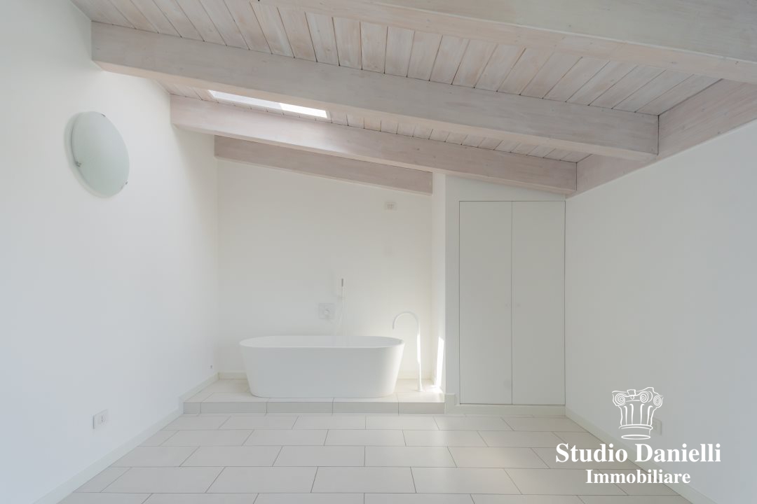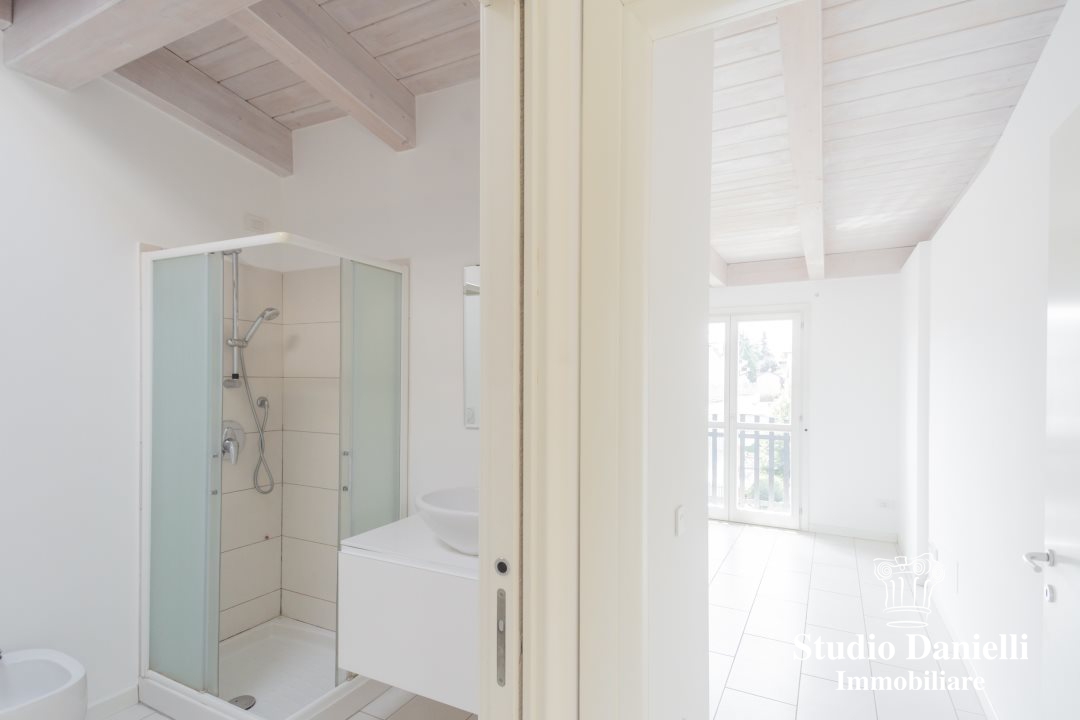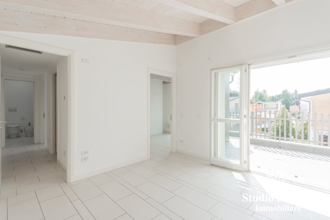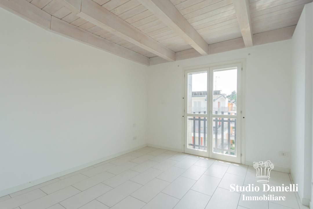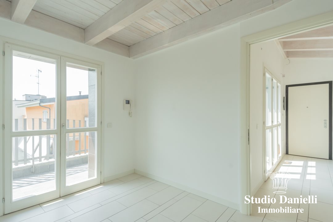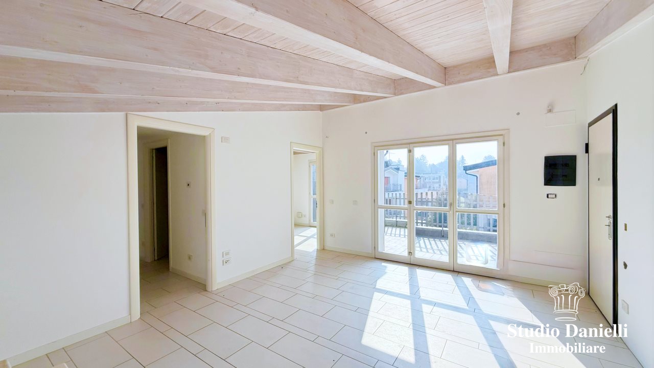 In palazzina di recente costruzione, trilocale con splendide TRAVI A VISTA in legno sbiancato, sito all'ULTIMO PIANO con TERRAZZO. La soluzione è composta da zona giorno con accesso al terrazzo collegato alla CUCINA semi ABITABILE, disimpegno, camera matrimoniale con vasca e cabina armadio, seconda camera di ampie dimensioni, bagno padronale e lavanderia.