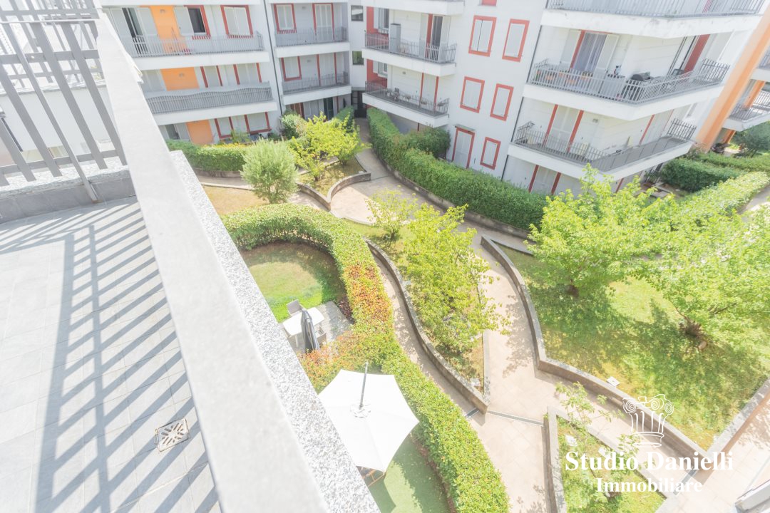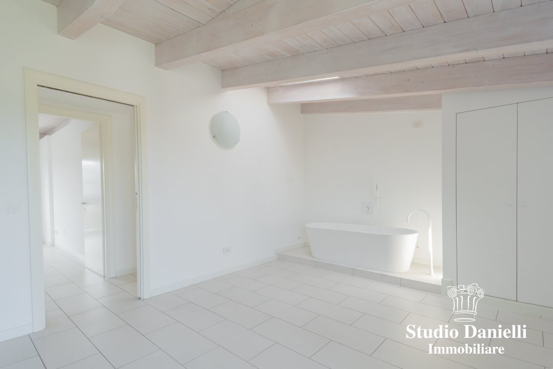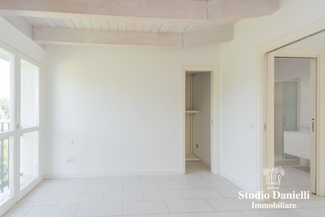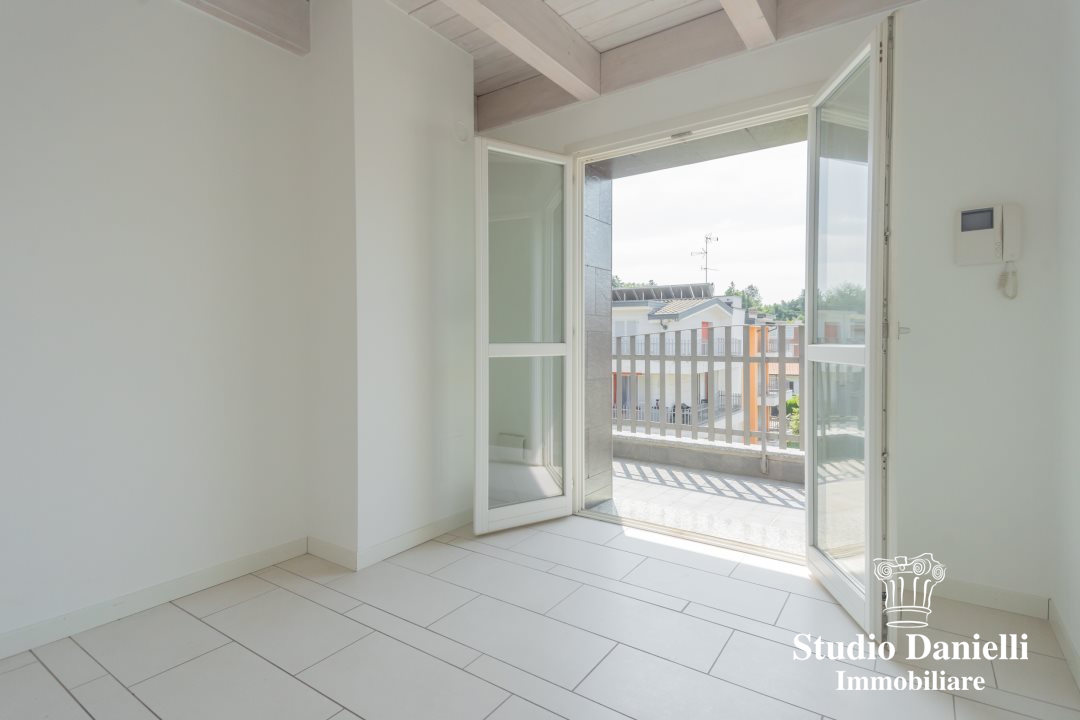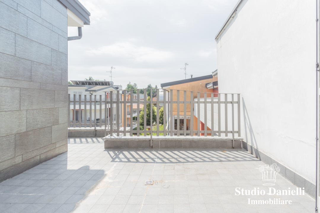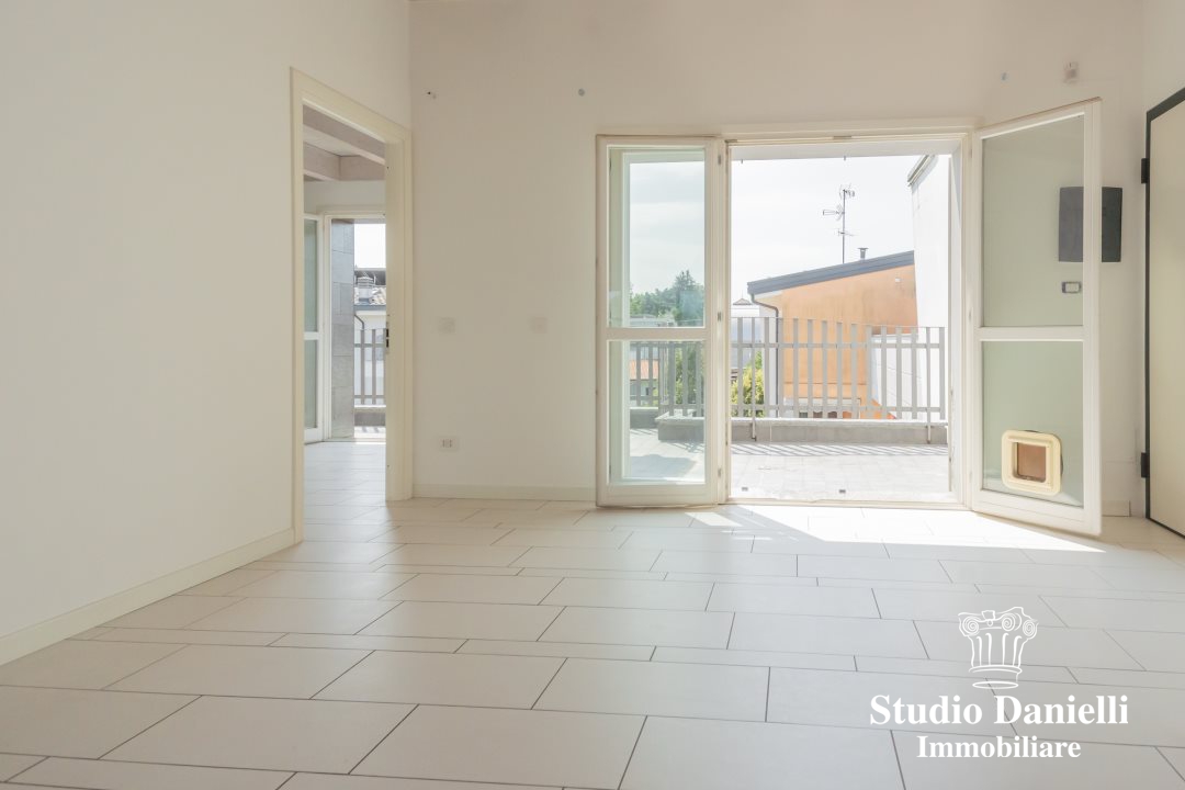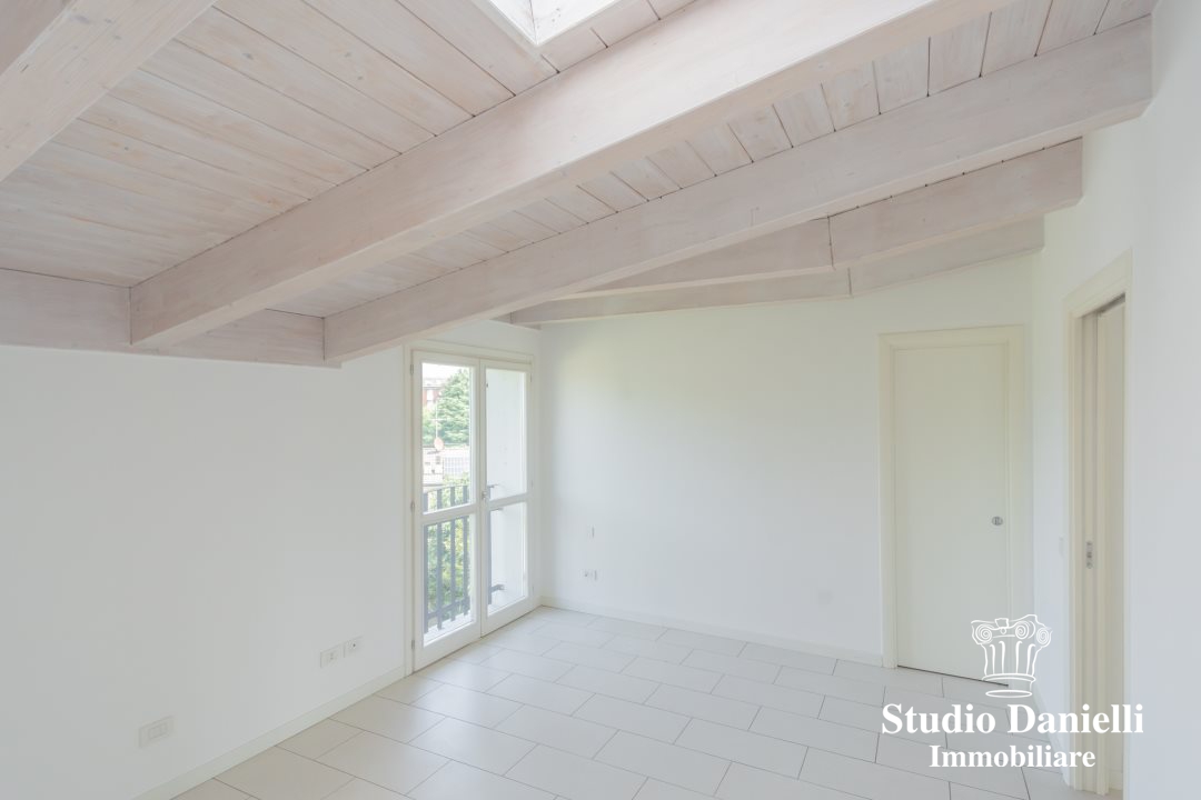 In palazzina di recente costruzione, trilocale con splendide TRAVI A VISTA in legno sbiancato, sito all'ULTIMO PIANO con TERRAZZO. La soluzione è composta da zona giorno con accesso al terrazzo collegato alla CUCINA semi ABITABILE, disimpegno, camera matrimoniale con vasca e cabina armadio, seconda camera di ampie dimensioni, bagno padronale e lavanderia.