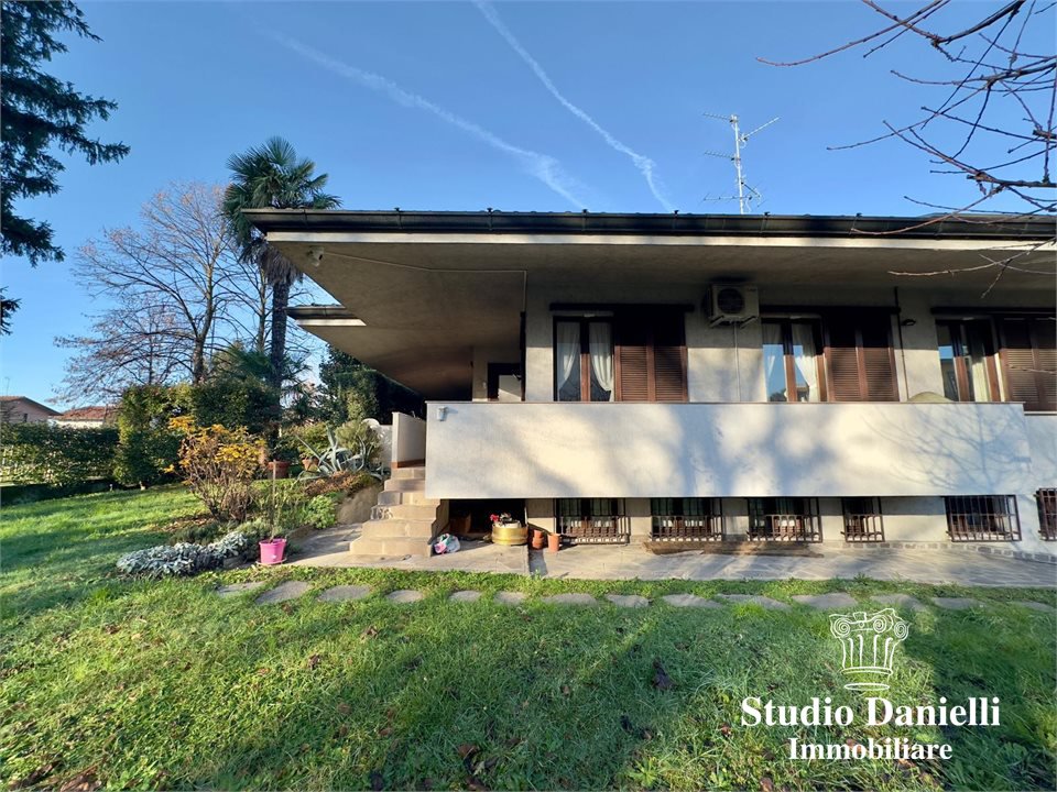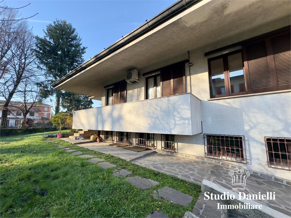 Rif. LD-Via Cavour, GIUSSANO, In zona tranquilla e residenziale, proponiamo in vendita villa singola luminosa e di ampia metratura, ideale per chi desidera indipendenza, comfort e spazi ben distribuiti. L'abitazione si sviluppa principalmente su un unico livello abitativo. Al piano terra troviamo l'ingresso, disimpegno, grande soggiorno doppio, cucina abitabile, tre ampie camere da letto (di cui due matrimoniali) e doppi servizi. Il piano seminterrato, collegato internamente, ospita cantina/taverna, bagno, lavanderia, centrale termica e accesso diretto al box doppio in larghezza. Completa la proprietà un ulteriore ampio box doppio al piano terra, ideale anche come spazio deposito o per ulteriori esigenze. La villa è circondata da un giardino privato che abbraccia l'intera abitazione, perfetto per momenti di relax all'aperto e per chi ama la privacy.