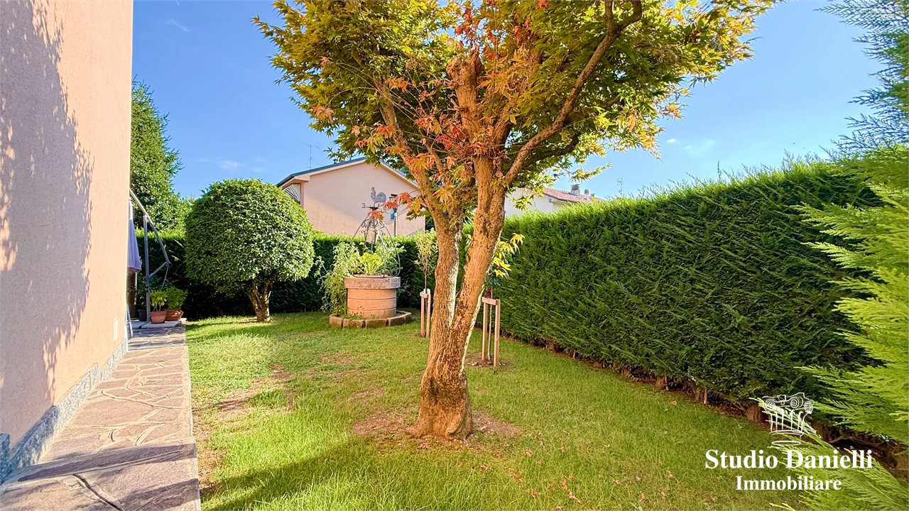 In contesto residenziale tranquillo, riservato ed immerso nel verde, proponiamo in vendita villetta indipendente libera su tre lati, dotata di ingresso pedonale e carraio privati, uno splendido giardino ben esposto e box doppio in lunghezza collegato direttamente all'abitazione. La villa, edificata negli anni '90, si sviluppa su due livelli abitativi oltre piano interrato. Il piano terra è composto da una comoda zona giorno con soggiorno di ampia metratura, cucina abitabile e bagno di servizio finestrato. Al piano primo si sviluppa la zona notte, composta da tre spaziose camere da letto (camera matrimoniale con terrazzino), oltre secondo bagno finestrato. Il piano interrato ospita una spaziosa taverna, una zona lavanderia e l'accesso diretto al box doppio in lunghezza, servito da corsello privato. Esternamente, la villetta è circondata da un bellissimo giardino su tre lati, ben sfruttabile e caratterizzato da un'ottima esposizione, illuminato tutto il giorno. L'immobile rappresenta una soluzione ideale per chi è alla ricerca di indipendenza, privacy e comodi spazi interni, in una zona residenziale tranquilla e riservata, senza spese condominiali.